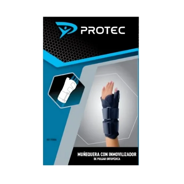La muñequera Protec con inmovilizador de pulgar es un dispositivo ortopédico que ofrece soporte y estabilidad a la muñeca y al pulgar, ideal para lesiones o condiciones que requieren inmovilización.